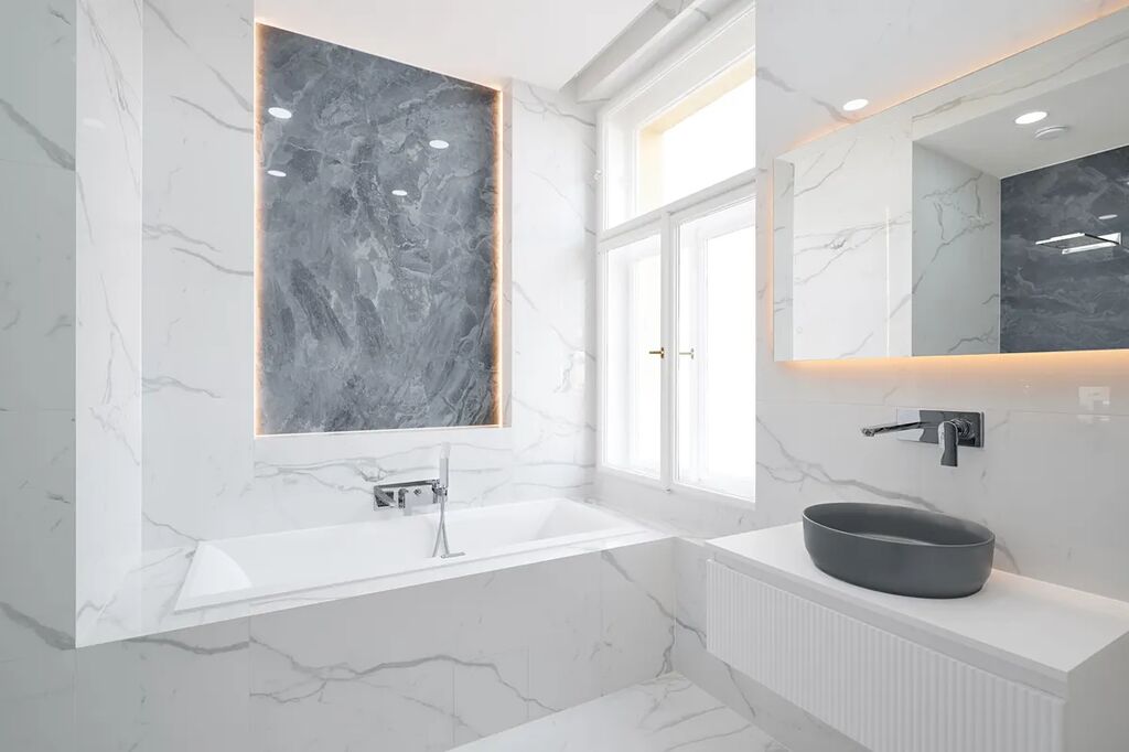Byt prošel kompletní nákladnou rekonstrukcí s důrazem na kvalitní materiály a nadčasový design: