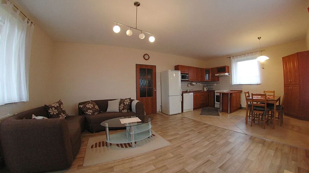 Dům je napojen na kompletní infrastrukturu, vlastní studna (možnost volby zdroje vody - lze přepínat), centrální plynový kotel, 300 litrový zásobníkový ohřívač vody, centrální wifi, rozvod satelitní TV do všech bytů, měření spotřeby energií u každého bytu samostatně.