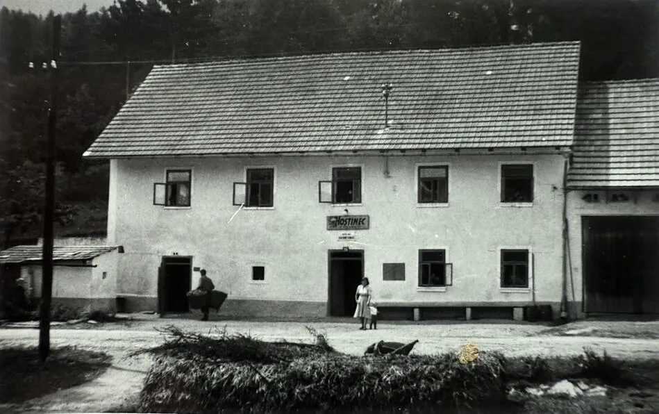 HISTORIE: Dům, jehož historie výrazně přesahuje 100 let, sloužil jako tradiční vesnická hospoda s tanečním sálem, konaly se zde všechny hlavní akce tehdejší doby, masopustní oslavy, zabijačky, tancovačky aj. Dům sestával ze sálu, výčepu, hospody a bytu majitelů. K domu náleželo střední hospodářství zahrnující maštal, přední a zadní stodola s vodrem, sýpku, malý sklep a polnosti. Zajímavostí je skutečnost, že dům je po celou dobu v majetku jedné rodiny a to již po čtyři generace.