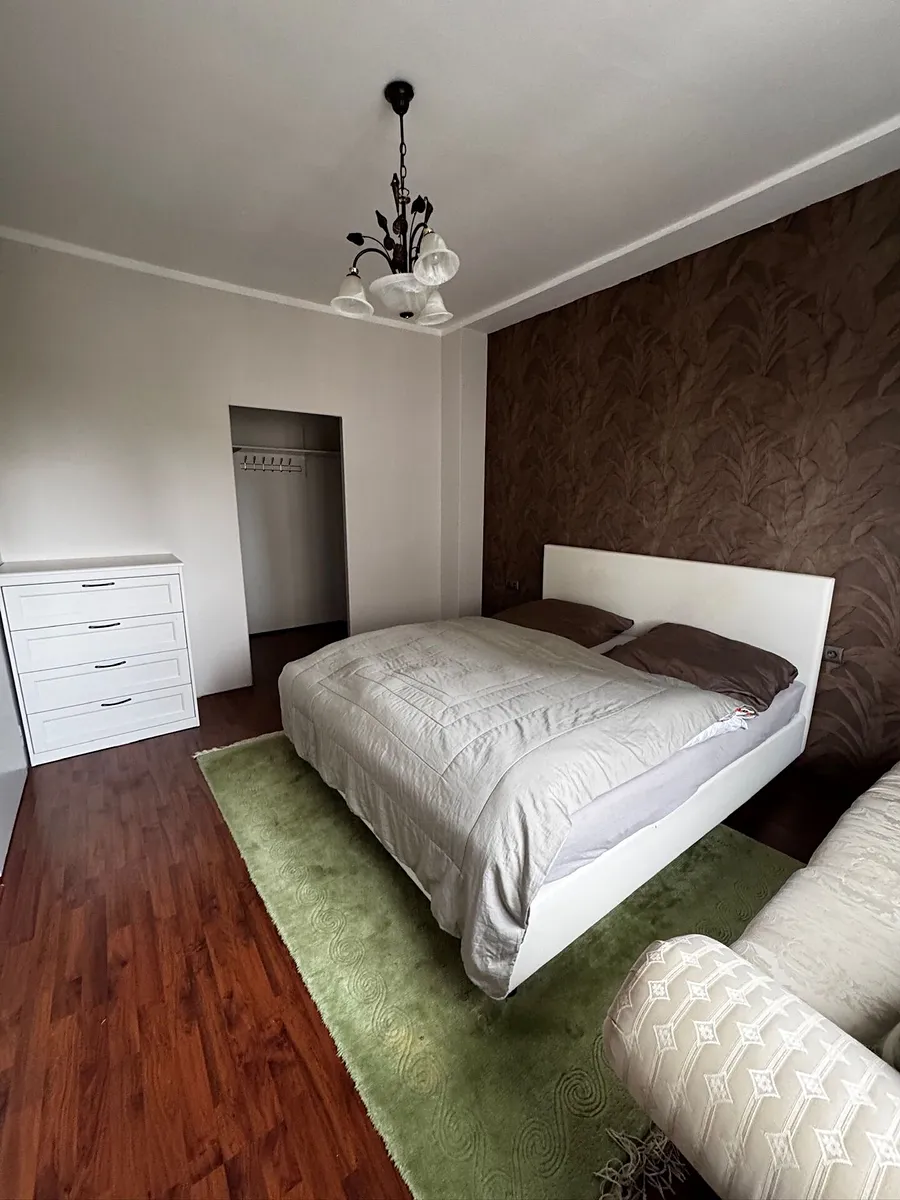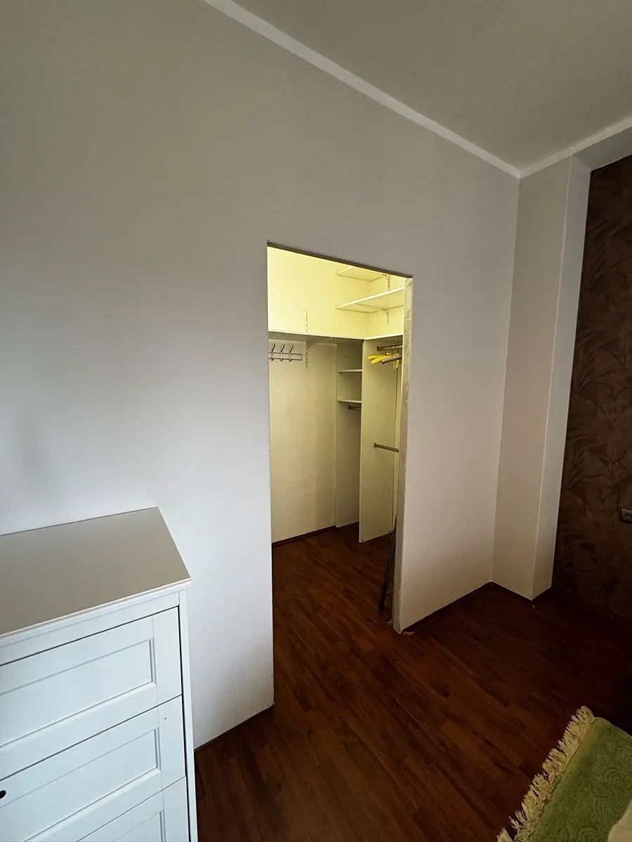 Dispozici bytu tvoří prostorná předsíň, obývací pokoj s kuchyňským koutem, průchozí do ložnice s velkou šatnou. Do koupelny s vanou a WC je vstup z předsíně. Byt je plně vybavený, veškeré vybavení je viditelné na fotografiích. Nachází se ve druhém patře (3. nadzemní podlaží) v domě bez výtahu.