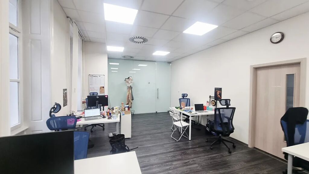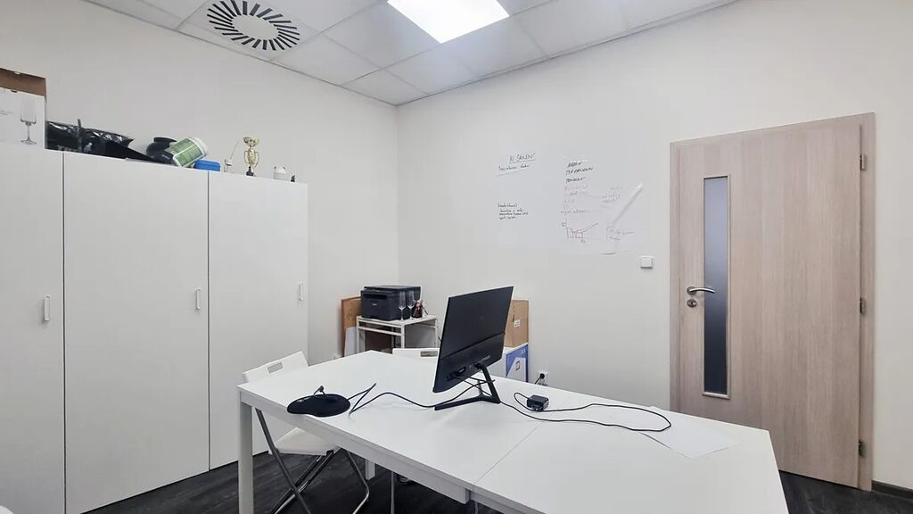 Kancelář je vybavena vzduchotechnikou, vertikálními žaluziemi a led osvícením.