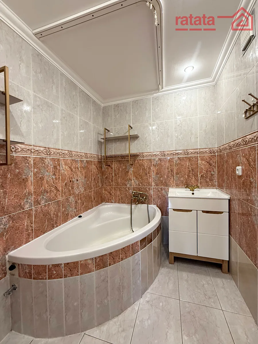 Je to čistý a slunný byt. Je zde kuchyňská linka, plynový sporák, myčka, rohová vana s umyvadlem a WC. Na podlahách je položeno lino, dlažba a plovoucí podlaha. Byt je volný k nastěhování IHNED.