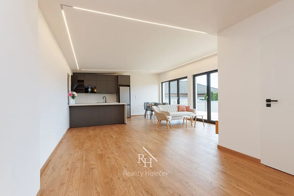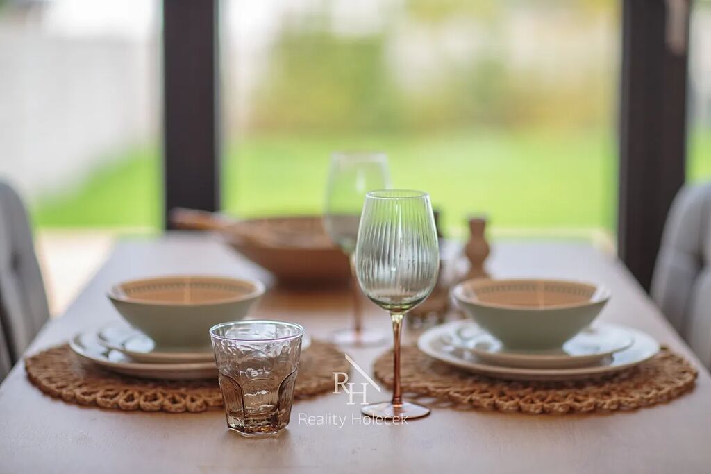 Dům nabízí více než 156 m² podlahové plochy, takže pohodlně uspokojí potřeby větší rodiny nebo kohokoli, kdo má rád prostor. Vzdušnost, světlo a otevřený hlavní obytný prostor propojený se zahradou vytvářejí atmosféru klidného a nadčasového domova – každý detail tu má své místo.