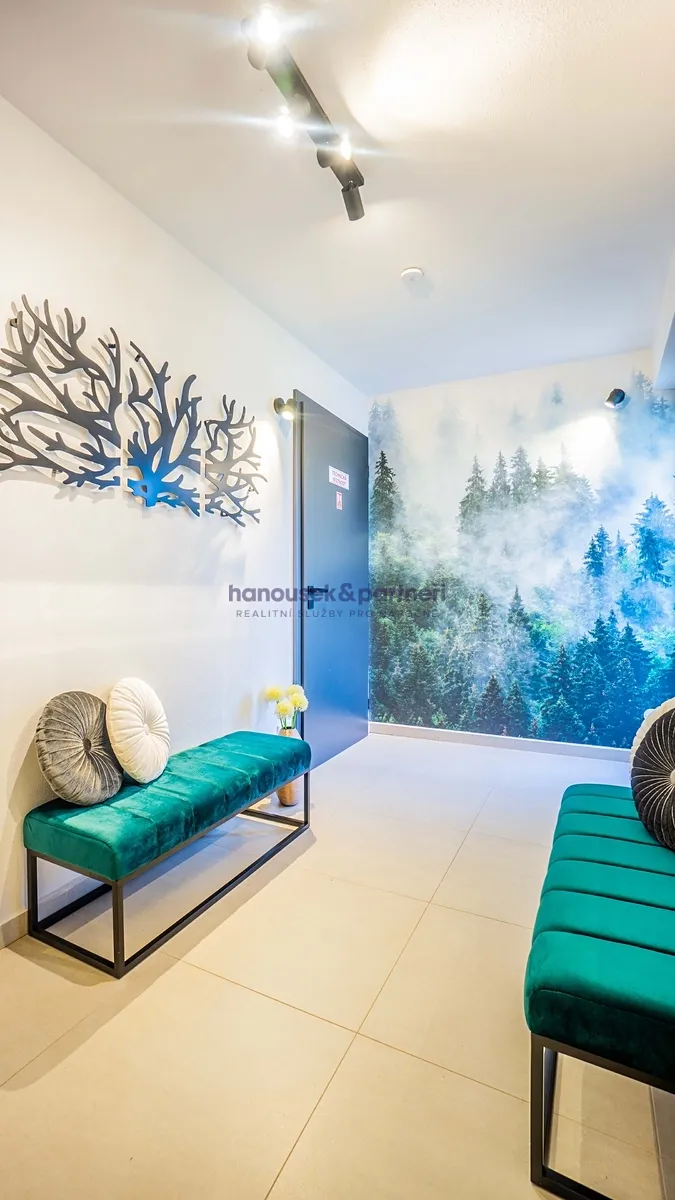 Investory taky určitě potěší, že se apartmán prodává kompletně vybavený – od masivního nábytku na míru přes spotřebiče až po ručníky. Při zařizování se myslelo na víkendové výletníky i rodiny, co tu stráví celé léto. Nechybí pračka, sušička nebo vysokorychlostní WiFi.