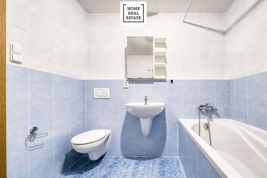 - Koupelna s vanou, toaletou, umyvadlem a pračkou.