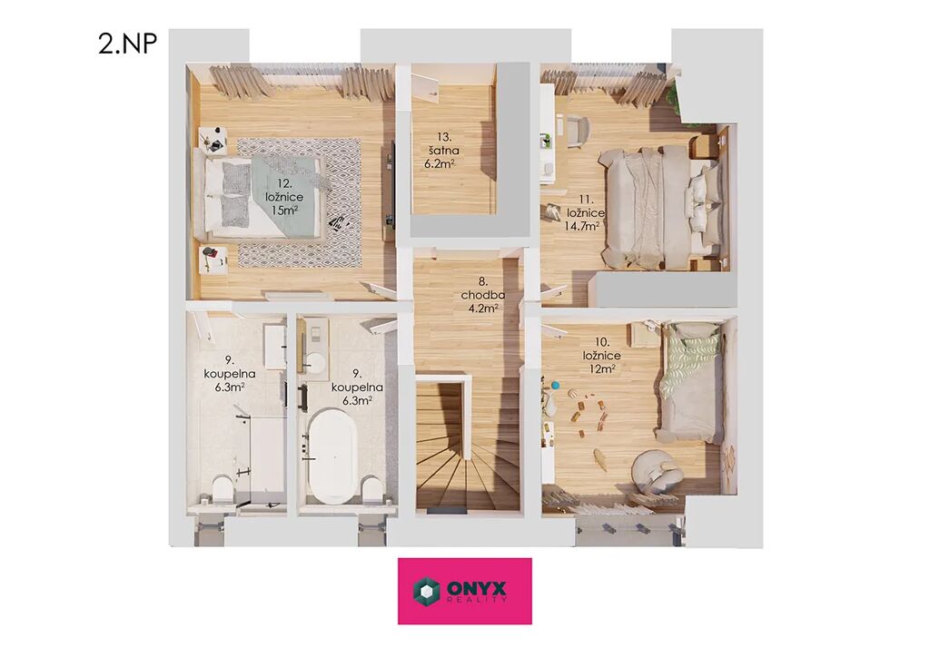 • Dvě koupelny, technická místnost