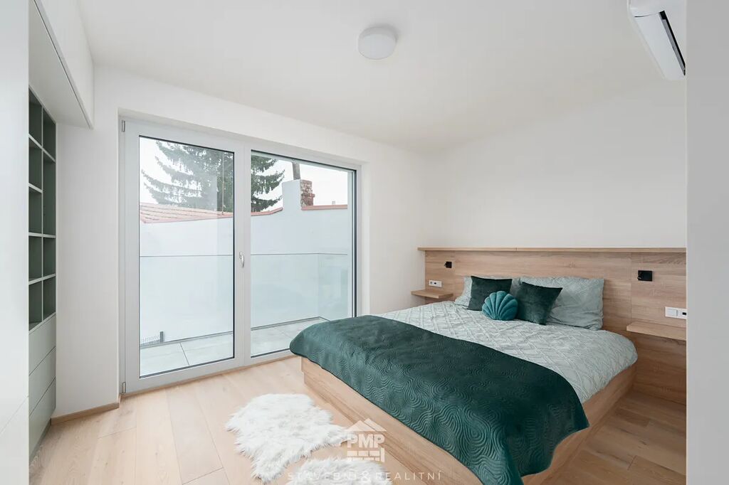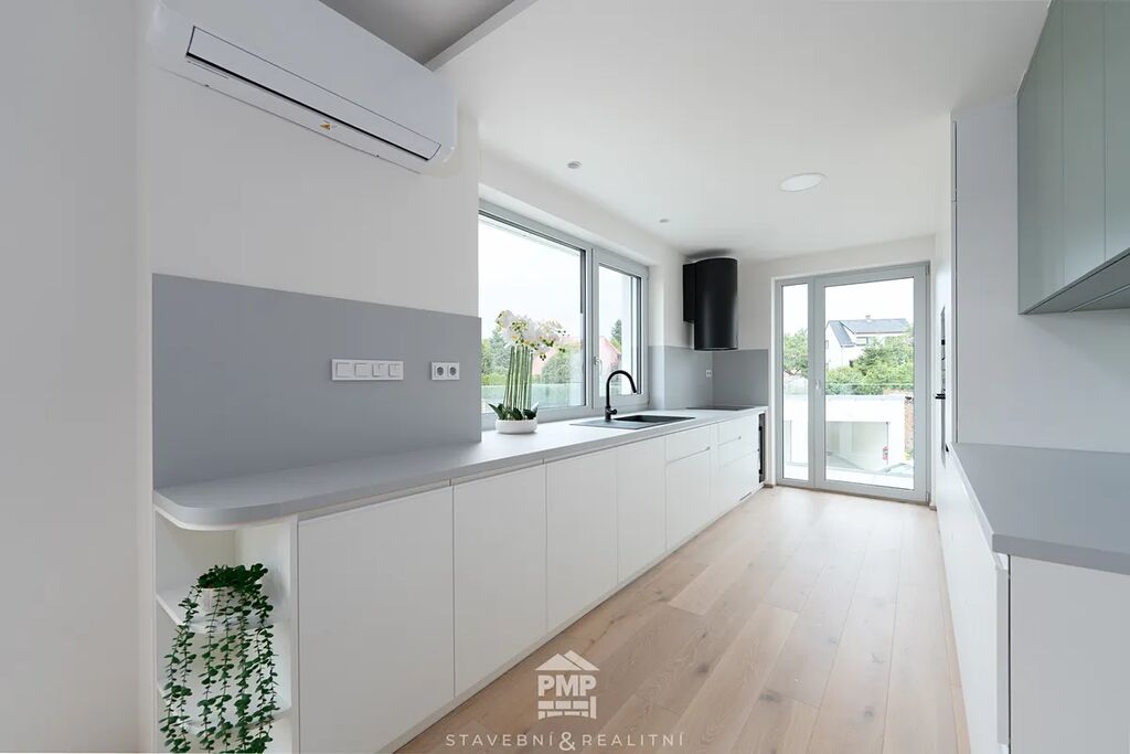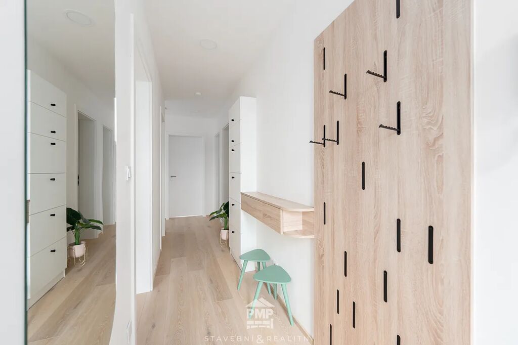 Byt je vybaven klimatizačním systémem Dražice v každé obytné místnosti, takže Vám zajistí příjemnou teplotu po celý rok. O tepelný komfort se stará podlahové teplovodní vytápění napojené na centrální tepelné čerpadlo NIBE vzduch–voda. Kvalitu interiéru podtrhují dubové lepené podlahy, hliníková okna s trojsklem a předokenní žaluzie na elektrický pohon. Samozřejmostí je centrální vysavač pro snadný úklid, příprava na fotovoltaickou elektrárnu a využívání dešťové vody, garáž s přípojkou na wallbox pro elektromobil a také příprava na optický internet. Tento byt tak představuje dokonalou kombinaci komfortu, elegance a moderních technologií.