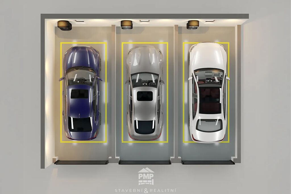 K bytu náleží také garáž s nadstandardní hloubkou 7 metrů a vlastní venkovní parkovací stání, což Vám poskytne komfortní a bezpečné parkování.
