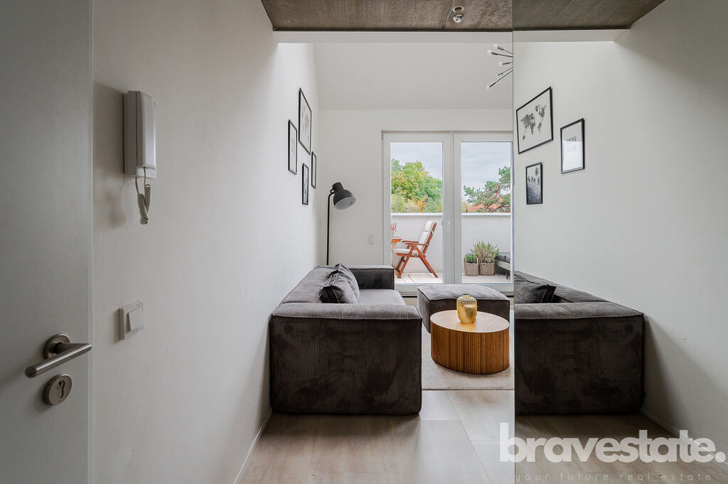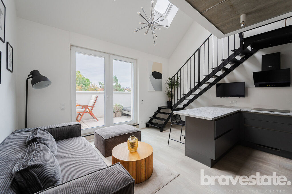 Nabízíme k prodeji krásný, světlý mezonetový byt 3+kk o velikosti 64 m² s balkonem (3 m²), terasou (7 m²) a sklepem (3 m²), který se nachází ve 3. (posledním) patře novostavby z roku 2021 v klidné části Prahy 10 – Záběhlice, ulice V Korytech.