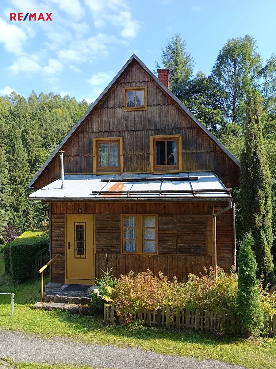 Nabízíme k prodeji dřevěnou podsklepenou chatu s garáží, celoročně obyvatelnou. Zastavěná plocha je 57m2. Ostatní plocha je 328m2.
