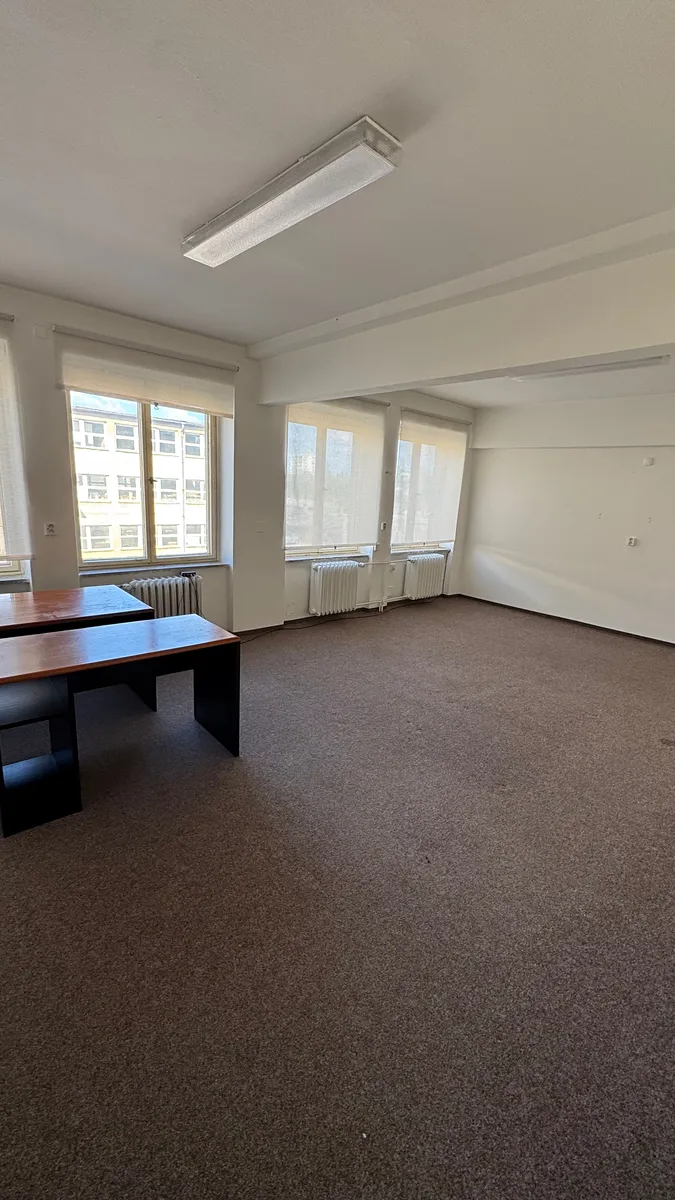 Vybavení a služby: V rámci budovy máte k dispozici společné sociální zařízení a kuchyňku. Podlaha je pokryta zátěžovým kobercem, což přispívá k pohodlnému a profesionálnímu prostředí.