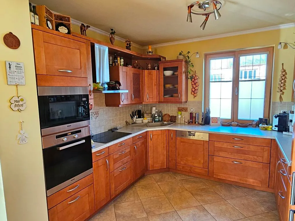 RD je vytápěn plynovým kotlem Vaillant (kombinací podlahové vytápění a radiátorů), který zajišťuje rovněž dostatek teplé vody. Náklady na topení a ohřev teplé vody jsou 3.050,-Kč/měsíc. Pokoje ve 2. NP orientované na jich jsou klimatizovány špičkovou klimatizací Samsung WindFree. Okna jsou od renomovaného rakouského výrobce Internorm a jsou vybavena sítěmi proti hmyzu a interiérovými žaluziemi. Luxusní kuchyně z masivu od kuchyňského studia Kydlíček je vybavena vestavěnými spotřebiči Miele. Celé 2. NP je navrženo bytovým architektem a je zařízeno nábytkem na míru s důrazem na dostatek úložných prostor. K dispozici je také kvalitní internet vhodný pro IT i gamery s rozvodem do většiny pokojů.