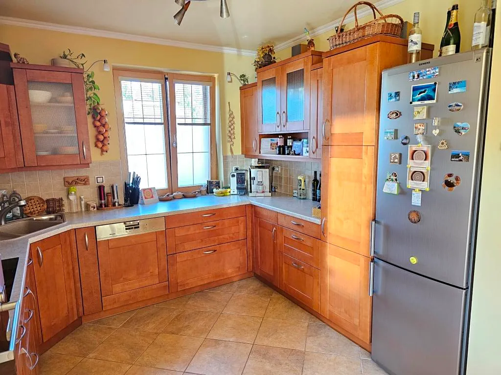 Veškeré vybavení RD a zahrady zůstane novému majiteli. Od nábytku, přes elektroniku (pračka a sušička v dolní koupelně, několik TV…), samozřejmě kuchyňskou linku s vestavnými spotřebiči, ale i kompletní vybavení kuchyně (hrnce, pánve, talíře, příbory, sklenice a hrnečky …), dále matrace, lůžkoviny a ručníky, až po zahradní vybavení (zahradní stůl a židle, sekačka, zahradní náčiní…). Sbalte se jako na dovolenou a veškeré zařízení a vybavení budete mít po nastěhování k dispozici.