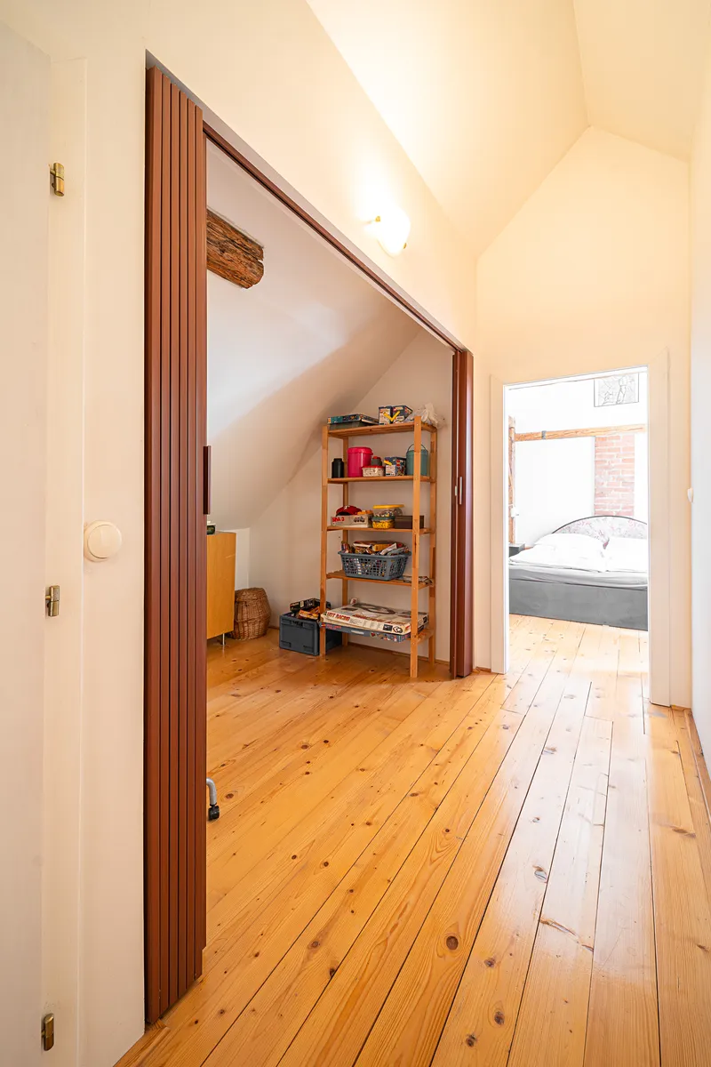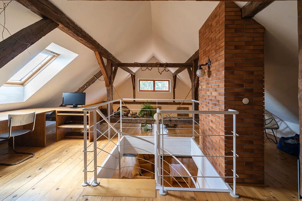 Dům nabízí užitnou plochu 211 m². V přízemí se nachází obývací pokoj s kuchyní o ploše 38 m2, hala se zádveřím o ploše 18 m2, pokoj o ploše 39 m2, koupelna s vanou 5 m2, chodba 13 m2, komora 9 m2, celkem v 1.NP 122 m2 + zastřešená terasa 35 m2. Do druhého patra se dostaneme po schodišti 3 m2, kde nalezneme galerii 35 m2, 2 ložnice (23 m2 a 12 m2), chodbu 5 m2, šatnu 4 m2, koupelnu 5m2 a WC 2 m2, celkem v 2.NP 86 m2. Na pozemku o ploše 538 m² najdete nejen dům samotný, ale i zastřešenou terasu 35 m2, nezastřešenou terasu 23 m2