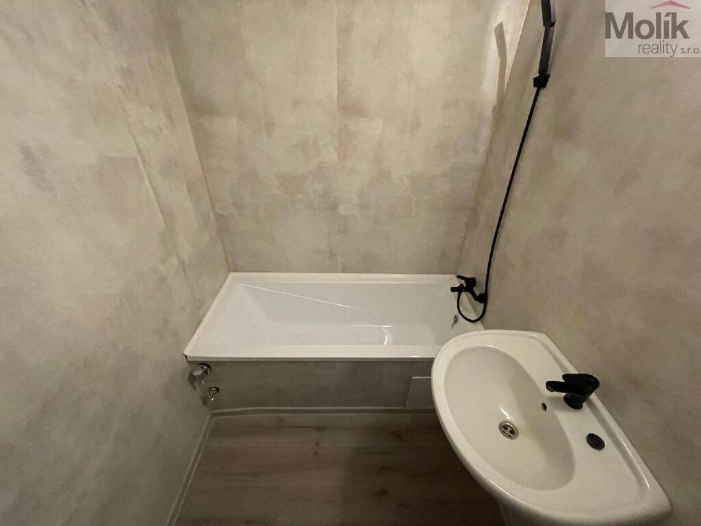 Bytová jednotka prošla kompletní rekonstrukcí - nová kuchyňská linka, koupelna je oddělena od toalety.