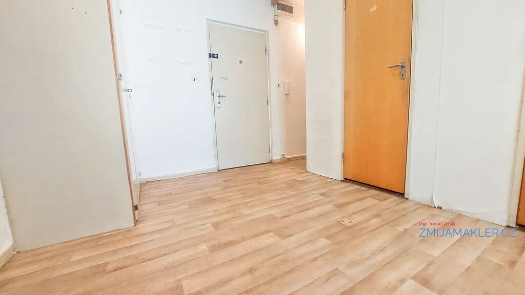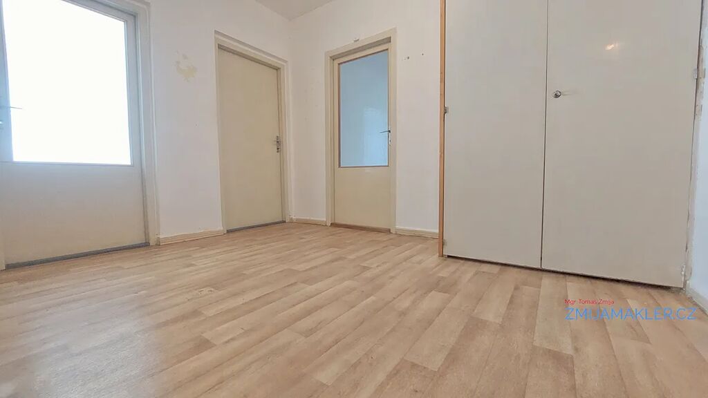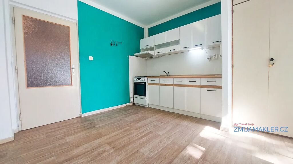 Z předsíně se dostanete do kuchyně se zánovní linkou a do jednoho z pokojů, další dveře vedou do prostorného obývacího pokoje, z něhož je vstup do třetí místnosti – ideální pro ložnici či dětský pokoj. Nechybí ani praktický úložný prostor v předsíni, kam pohodlně uložíte například kola.