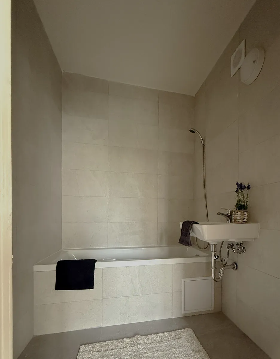 Měsíční nájemné obsahuje holý nájem ve výši 11.628 Kč a k tomu jsou náklady na bydlení 6.572 Kč (voda, teplo, úklid, osvětlení společných prostor... ). Náklady na bydlení jsou počítané pro dvě osoby. Celkový nájem tedy činí 18 200Kč.