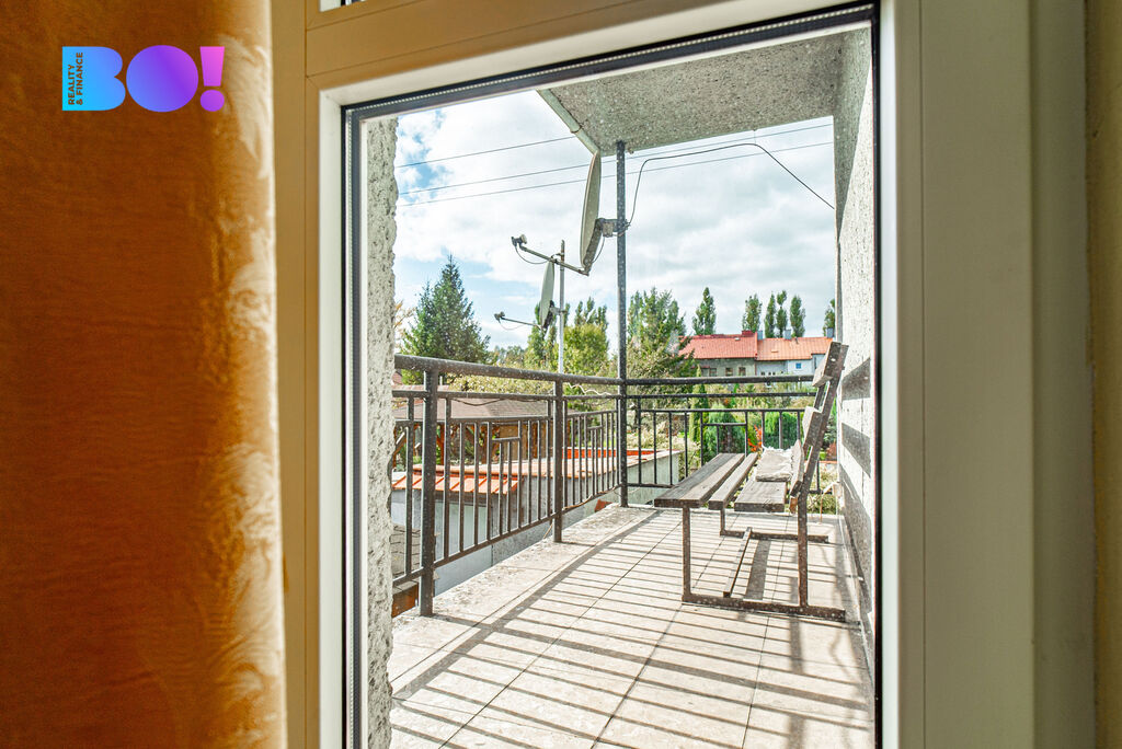 Vrchní patro, které bylo obýváno, nabízí prostornou dispozici s balkonem a je vybaveno klimatizací.