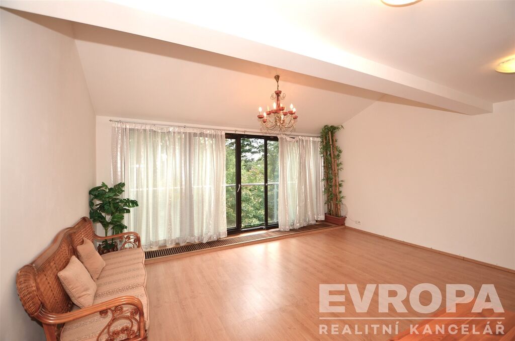 Nabízíme krásný byt, který se nachází ve 2 patře krajního, řadového rodinného domu s vlastním vstupem po schodišti (společná vstupní předsíň v přízemí domu a schodiště se vstupy do jednotlivých bytů). Byt nabízí komfortní a slunný prostor, dispozice bytu je 2+kk, skládá se ze vstupní předsíně, prostorný obývací pokoj s velkoformátovými okny s výhledem do zeleně a na slunnou jižní stranu, kompletně vybavená kuchyňská linka. Dále samostatná ložnice. Byt je částečně vybavený, kuchyňská linka sporák, lednice, pračka, částečně nábytek viz. foto (nábytek možné po dohodě odstranit), koupelna s vanou, wc samostatné. Volné parkování před domem, autobusové spojení na metro Kačerov, nebo Budějovickou. Dům se nachází přímo u vstupu do lesoparku. Majitel preferuje klidnější nájemce, bez domácích zvířat a vzhledem k dispozici bytu 2+kk, maximálně 2 osoby. Garantuje velmi korektní jednání a možný dlouhodobější nájem. Kompletní výše nájmu včetně fixních poplatků je 25000,Kč měsíčně. Byt je k nastěhování volný ihned. Prohlídky možné po dohodě.