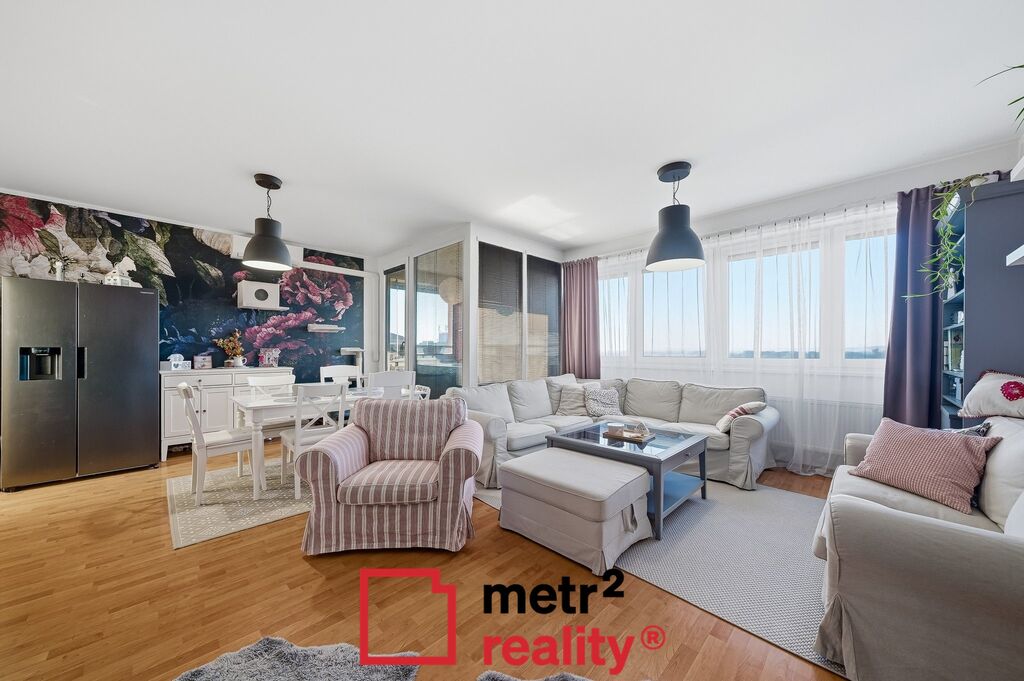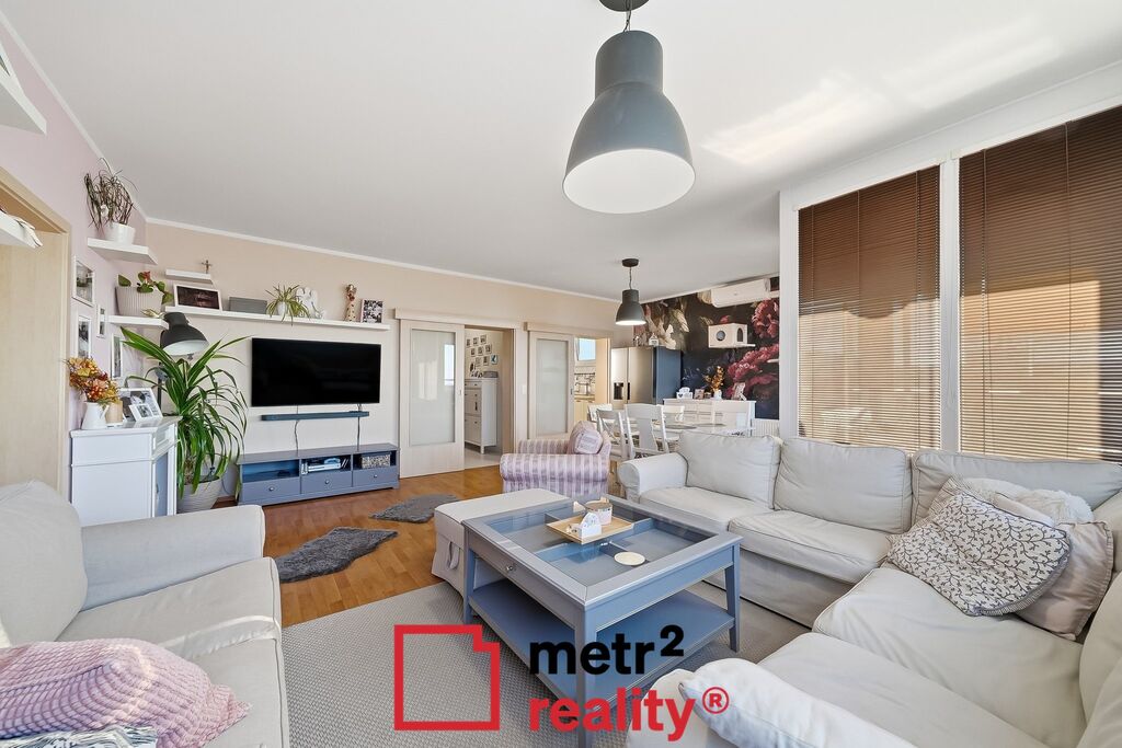 Hledáte výjimečný, slunný a velmi prostorný byt v Uničově? Ve výhradním zastoupení majitelů si Vám dovolujeme nabídnout byt v cihlovém domě, který byl zkolaudován v roce 2011. Byt je v osobním vlastnictví, o dispozici 4+1 a je umístěn v posledním, 7. patře bytového domu s výtahem. Byt má krásnou podlahovou plochou 99,32 m2, součástí bytu je zasklená terasa a balkon o celkové výměře 7,33 m2 a sklep v přízemí domu o výměře 4,62 m2. Byt disponuje prostornou vstupní chodbou, koupelnou se sprchovým koutem i vanou, WC je zvlášť. Z obývacího pokoje je vstup do dětského pokoje a kuchyně. Další dvě ložnice jsou se samostatnými vstupy. Součástí dětského pokoje je i samostatná šatna. Z obývacího pokoje je vstup francouzským oknem na zasklenou terasu s krásným výhledem do okolní krajiny. Byt je krásně vybavený ve venkovském stylu, včetně kuchyňské linky na míru, jejíž součástí jsou vestavěné spotřebiče. Poté, co stávající majitelé byt koupili, předělali si jej k obrazu svému a byt zmodernizovali, je nově obložená koupelna i WC, nová kuchyňská linka, interiérové dveře, včetně obložkových zárubní, mezi kuchyní a obývacím pokojem jsou posuvné dveře do pouzdra. V obývacím pokoji je klimatizace, která ochladí v parných dnech. V případě zájmu o byt jsou majitelé připraveni jednat o přenechání užívání oplocené zahrady se zahradním domkem, kterou mají v nájmu od Města a která se nachází hned za domem. V bezprostřední blízkosti bytu se pak nachází veškerá občanská vybavenost, škola, školka, poliklinika, obchody. Do centra města je to pěšky 5 minut. Město Uničov je velmi dobře sjízdné do Olomouce, autem 25 minut, což byt činí zajímavým i pro klienty z Olomouce, kterým nevadí dojíždění a ocení kouzlo a klid menšího města. V případě zájmu o prohlídku nás neváhejte kontaktovat a rádi Vám ji domluvíme.