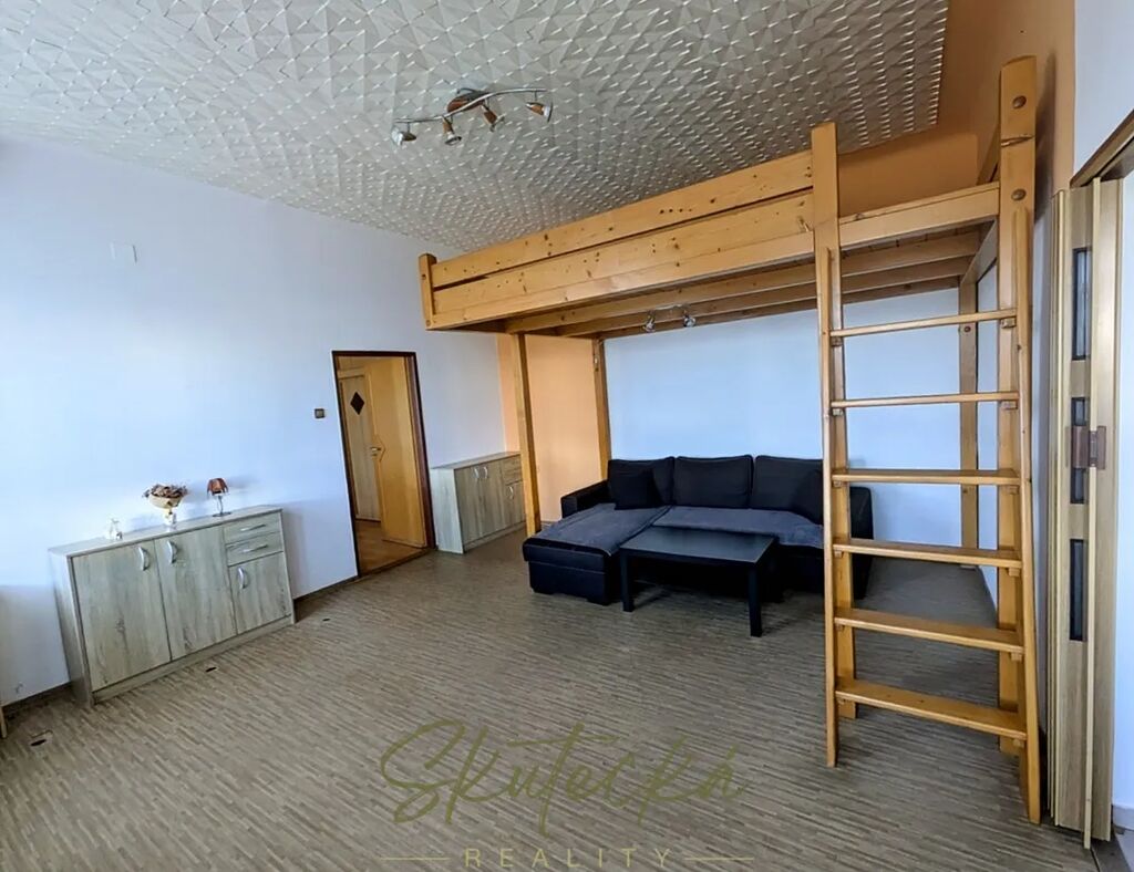 - Obývací pokoj je vybaven sedací soupravou s konferenčním stolkem, skríňkami, TV a TV stolkem, pracovním stolem a nadstavbou se spacím koutem,