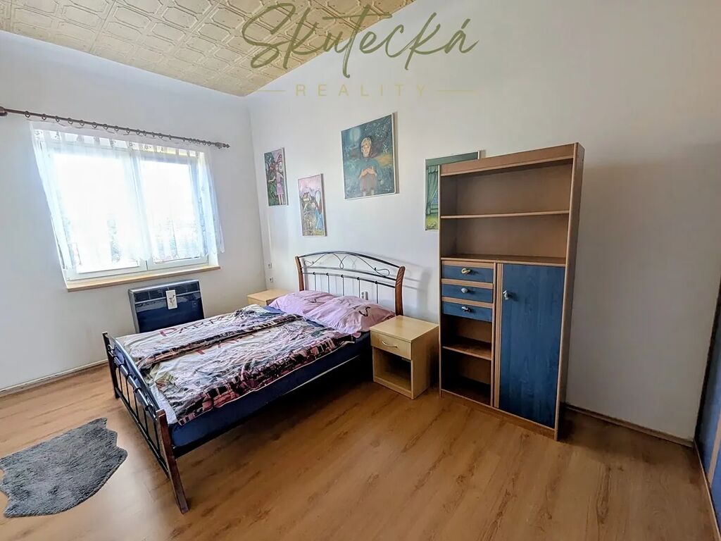 - V ložnici je dvoulůžková postel s nočními stolky, šatní skříně a policová sestava,