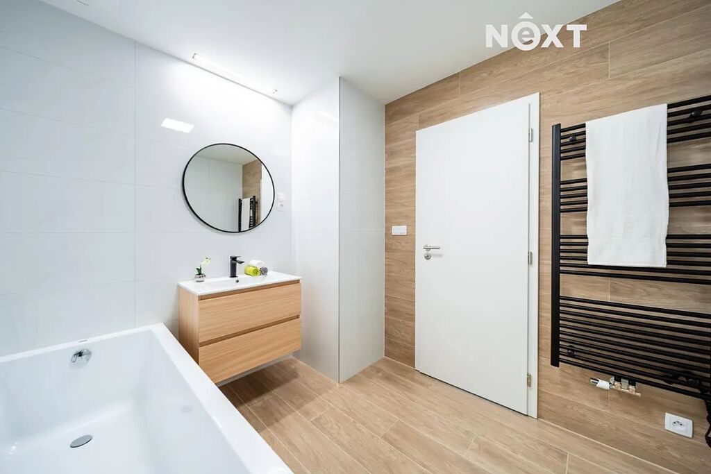 Už při vstupu do bytu vás přivítá předsíň o velikosti 6,1 m², která nabízí prostor pro vestavěné skříně i praktický botník. Na ni navazuje samostatné WC o velikosti 2,2 m² a moderní koupelna o velikosti 6,0 m², která je navržena v čistém, nadčasovém stylu a poskytuje dostatek prostoru pro komfortní každodenní užívání.