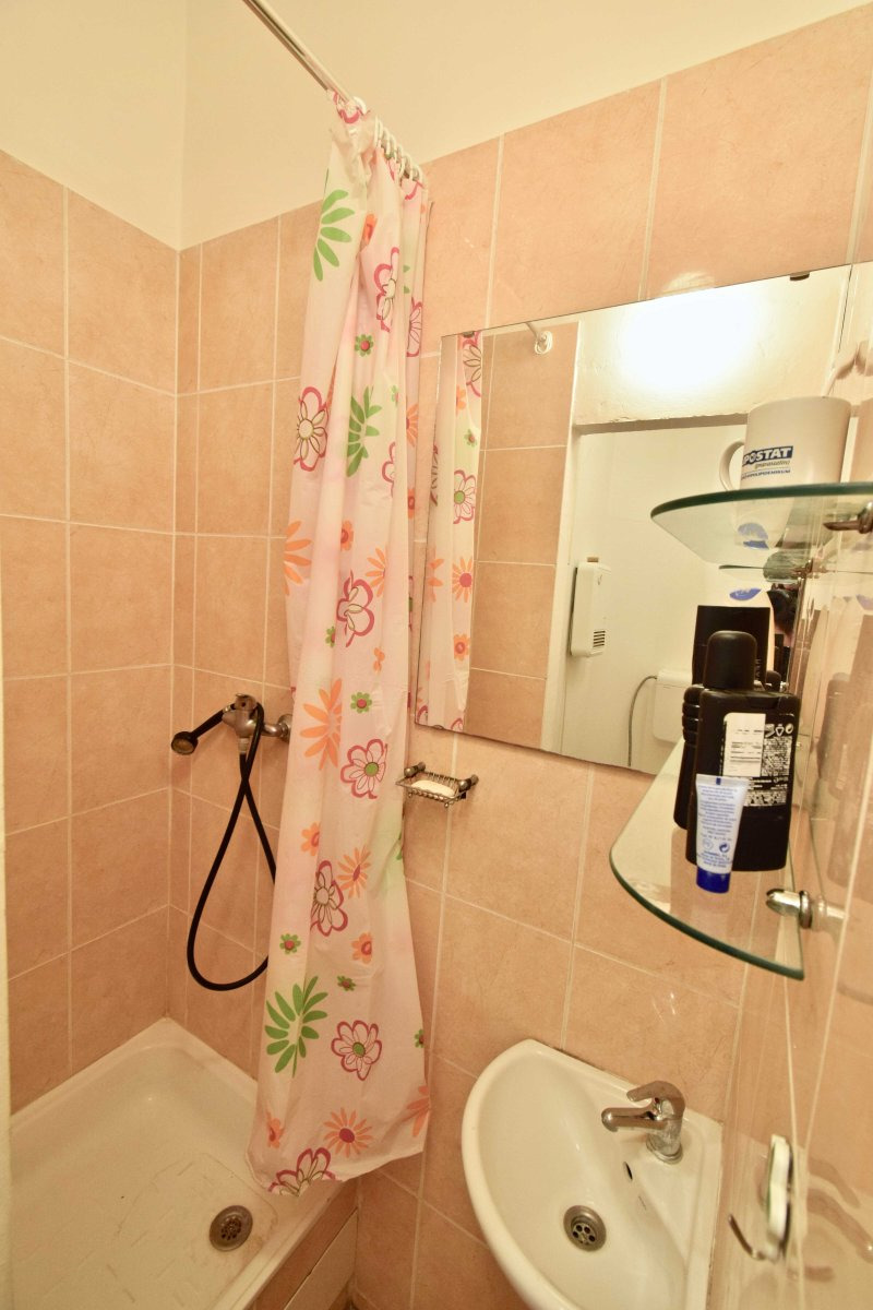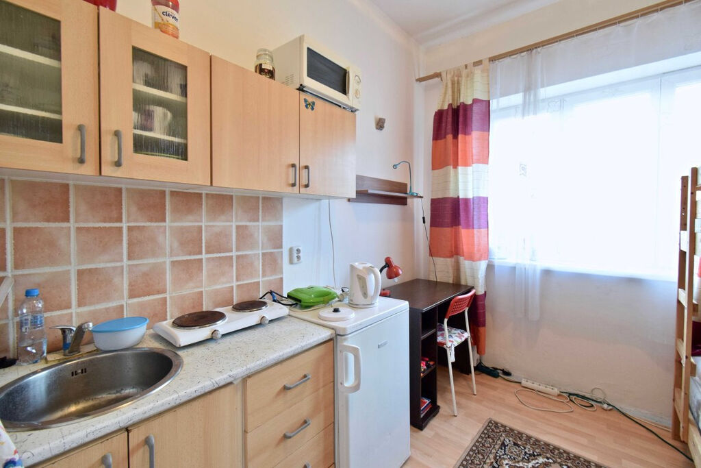 Byt se nabízí vybavený. Součástí kuchyňské linky je lednice, elektrický sporák a nádobí. Obývací část disponuje postelí a pracovním stolem s židlí. V předsíni se nachází úložná šatní skříň. Koupelna je zařízená sprchou, umyvadlem se zrcadlem a toaletou.