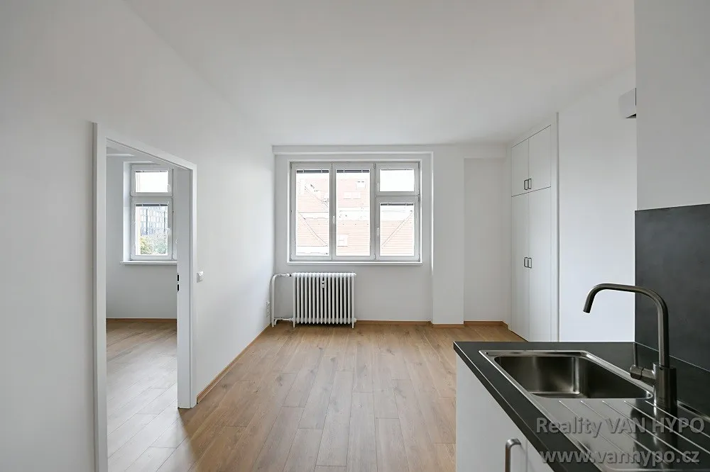 Příjemný, kompletně zrenovovaný a částečně vybavený 2+kk byt s lodžií ve 4. NP udržovaného bytového domu na Vinohradech, jen kousek od stanice metra Želivského.