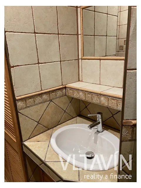 Na podlahách lino, dlažba a dřevěné parkety . Vytápění a ohřev vody zajištěn elektrokotlem.