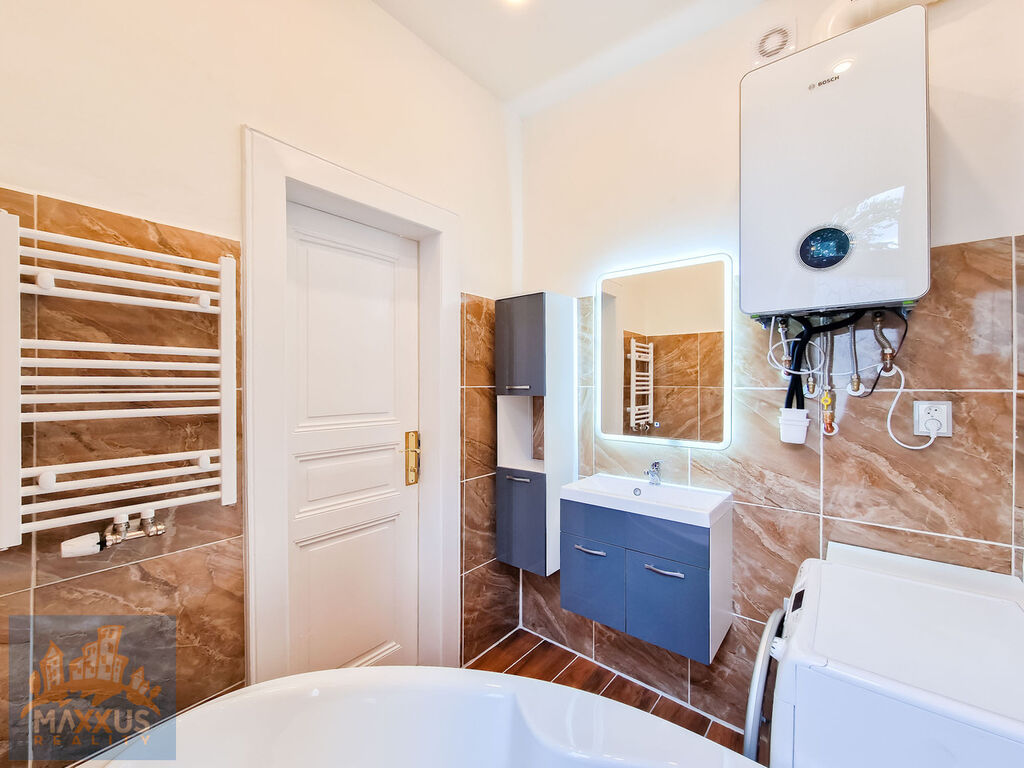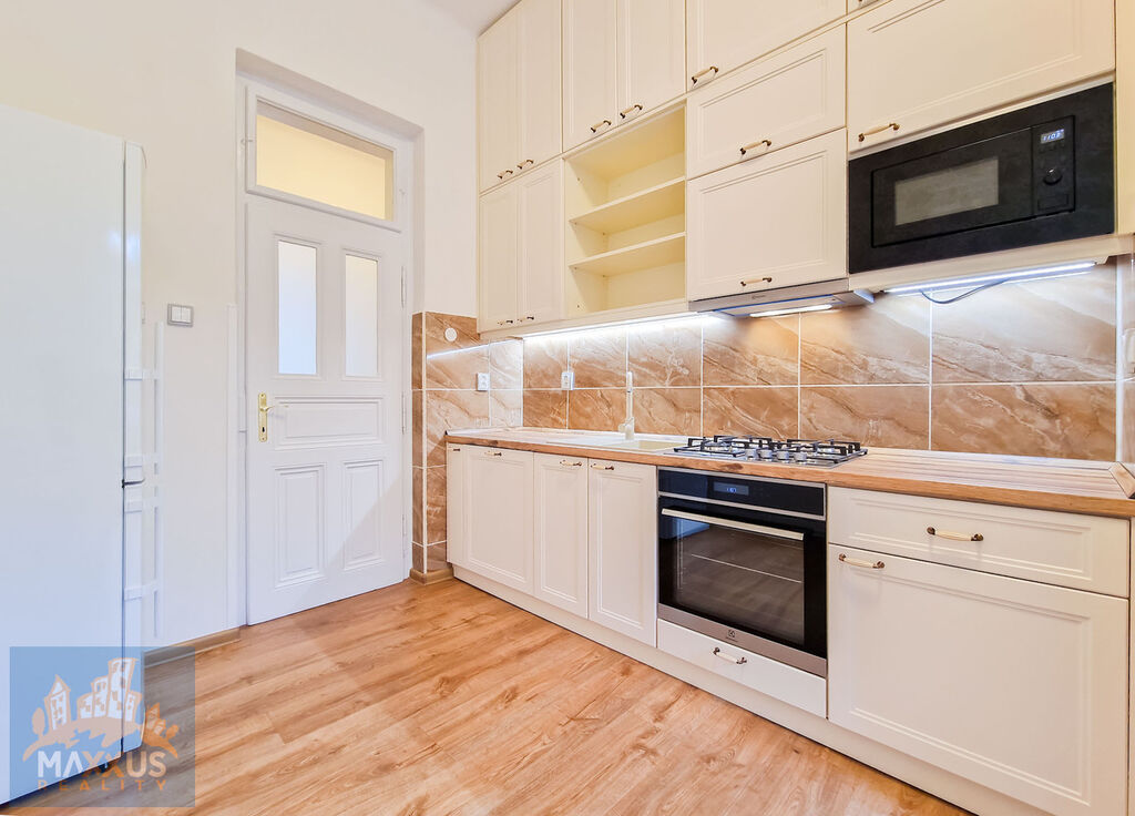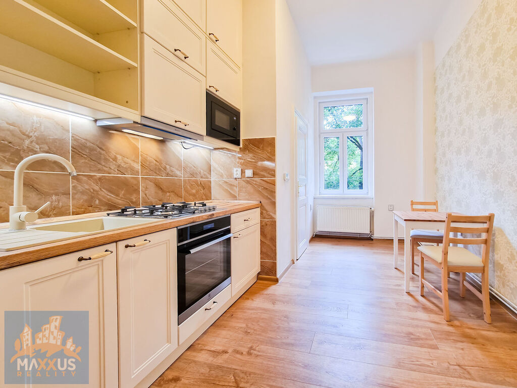 K okamžitému nastěhování nabízíme nově a kompletně zrekonstruovaný nebydlený bytu 1+1 o užitné ploše 47 m2 situovaný v 1. patře cihlového činžovního domu bez výtahu. Byt se nabízí kompletně vybavený nábytkem - po dohodě možnost část věcí odebrat. Při rekonstrukci byl kladen důraz na kvalitu zvolených materiálů. V bytě dostatek denního světla díky velkým plastovým oknům směrovaných do vnitrobloku a dřevěným do ulice. Výhodou bytu jsou jeho vysoké stropy. Dispozice: vstupní chodba s vestavěnou skříní a bezpečnostními pancéřovými dveřmi, přímo odvětrávaná samostatná toaleta s umyvadlem, obývací pokoj s rozkládací pohovkou, křeslem, stolkem, TV. Dále je zde kuchyně s jídelním stolem a plně vybavenou kuchyňskou linkou spotřebiči Electrolux (60 myčka nádobí, trouba s pyrolytickým čištěním, plynový sporák, mikrovlnná trouba, digestoř, lednice s mrazákem). Z kuchyně vstup do koupelny s rohovou vanou, umyvadlem, pračkou a plynovým kotlem, který zajišťuje ohřev teplé vody a vytápění bytu. Podlahy: dubové parkety a vynil. Parkování na ulici - modré zóny. Nájemné 23.000,- Kč + kompletní služby 6.000,- Kč, Kauce 29.000,- Kč a provize jeden nájem + 21% DPH. Internetového připojení v ceně služeb: internet + wifi 5GHz rychlost 100 Mbs download, 10Mbs upload. Makléř doporučuje prohlídku.