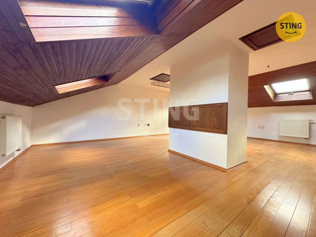 Dispozice bytu nabízí světlý obývací prostor s kuchyňským koutem, koupelnu se sprchovým koutem a WC. Díky podkrovnímu charakteru má byt jedinečnou atmosféru a působí velmi útulně.