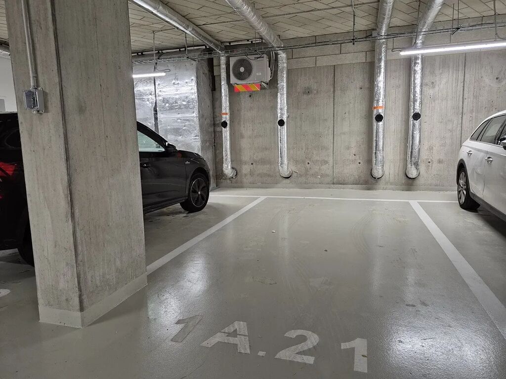 Parkovací stání a zděná sklepní kóje jsou situovány v přízemí multifunkčního domu ve stejné sekci jako se nachází výtah k jednotce, vše je tak dobře dostupné bez nutnosti pohybovat se po rozsáhlém objektu garáží.