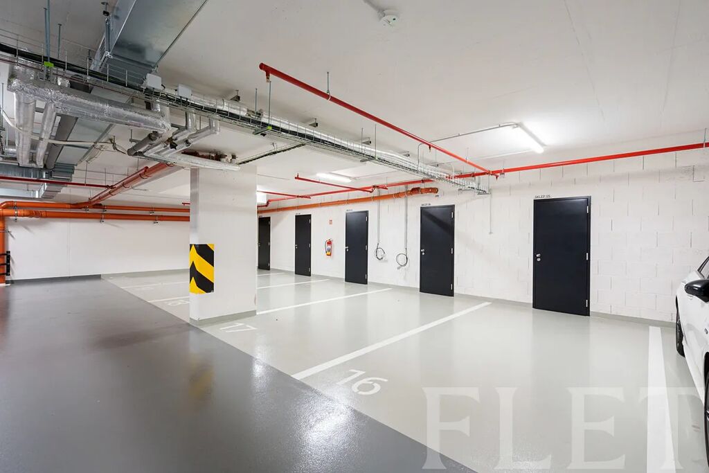 Interiér bytu byl navržen s pečlivostí a smyslem pro detail. Vysoký standard provedení podtrhují dřevěné podlahy, francouzská okna s trojskly, klimatizace, systém rekuperace vzduchu i vestavěný nábytek na míru. Prostorný obývací pokoj s moderní kuchyňskou linkou tvoří přirozené centrum bytu, ideální pro odpočinek i společné chvíle. Ložnice nabízí klidnou zónu pro relaxaci, praktická komora s kombinovanou pračkou se sušičkou zase usnadní každodenní provoz. Elegantní koupelna se sprchovým koutem a toaletou doplňuje dojem promyšleného a komfortního domova.