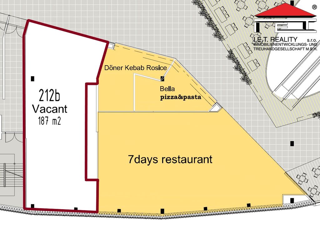 Nabízený prostor se nachází v 1. patře nákupního centra a je součástí designového food courtu s posezením pro zákazníky. Prostor je ve stavu shell & core.