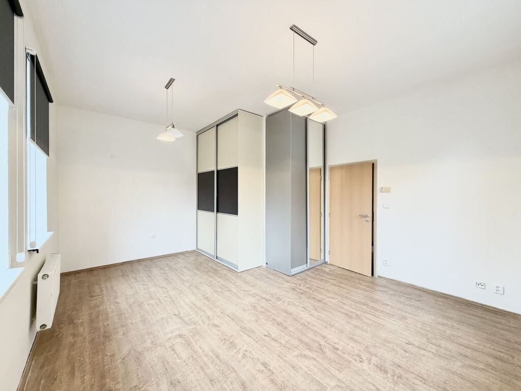 Byt se nabízí částečně vybavený. Kuchyně disponuje lednicí, myčkou, elektrickou troubou, sporákem, mikrovlnnou troubou a digestoří. Obývací část je zařízena dvěma vestavěnými skříněmi. Dále v bytě najedeme prostornou komoru s úložným prostorem. V koupelně je vana a toaleta.