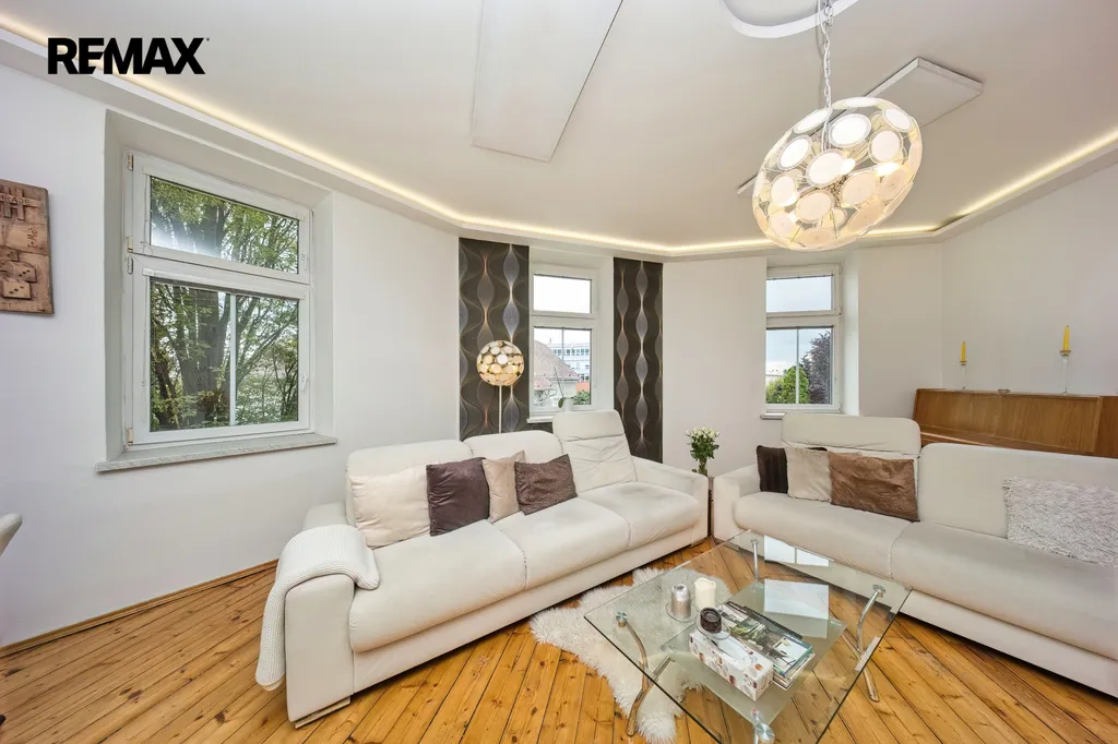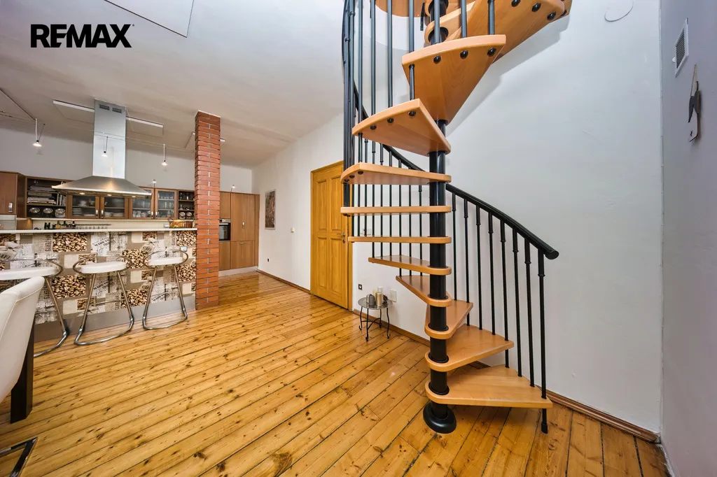Nabízíme k prodeji mezonetový byt 5+1 s krytým parkovacím stáním, zahradou ve společném užívání, možnou terasou a sklepem v osobním vlastnictví o celkové evidované podlahové ploše 189 m². Byt se nachází ve 2. a 3. nadzemním podlaží (z celkem 3 NP) cihlového domu z roku 1919 bez výtahu.
