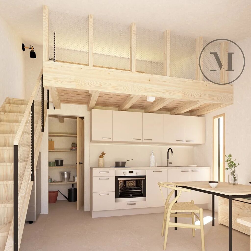 Interiér nabízí: prostor pro kuchyňku, stolek a sezení, sprchu, WC a umyvadlo, úložné prostory a chladicí zónu (např. lednice/mrazák pro ovoce a zeleninu), schody na půdu, kde je prostor třeba na sušení bylin či ovoce nebo také prostor pro relaxaci nebo rodinné hry. Součástí standardního vybavení je také koupelna se sprchovým koutem, závěsným WC, umyvadlem a elektrickým ohřívačem vody.
