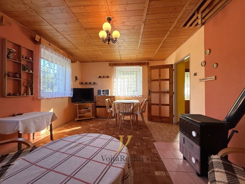 V přízemí najdete zádveří, chodbu, koupelnu s WC a sprchovým koutem, útulný obývací pokoj, spíž, menší kuchyň a velkou garáž. V podkroví jsou dvě velké ložnice a jeden prostorný pokoj, který v minulosti sloužil jako úložný prostor nebo dětský pokoj. Dům byl kolaudován v roce 1998 a je ve výborném technickém stavu – s plastovými okny, opraveným komínem a zateplením.