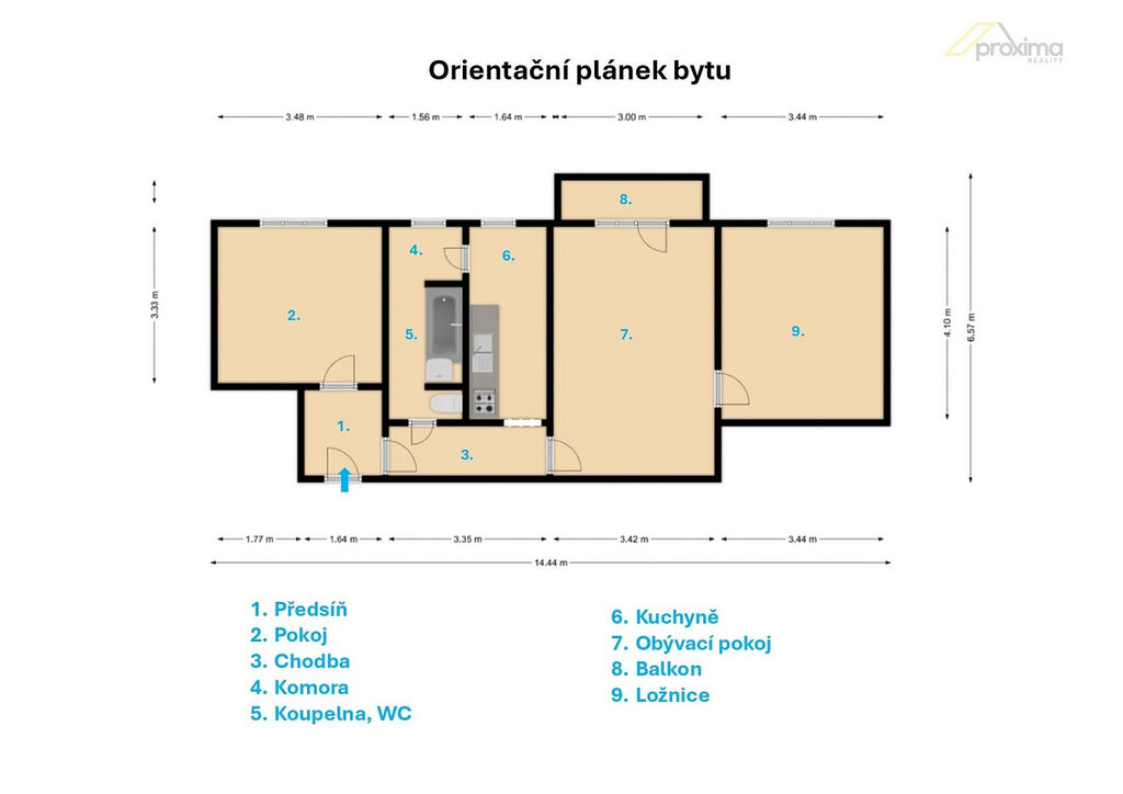 Proxima Reality, s. r. o. nabízí k pronájmu byt 3+1 (68m²) v 6. patře panelového domu s výtahem v atraktivní lokalitě v ulici L. M. Pařízka.