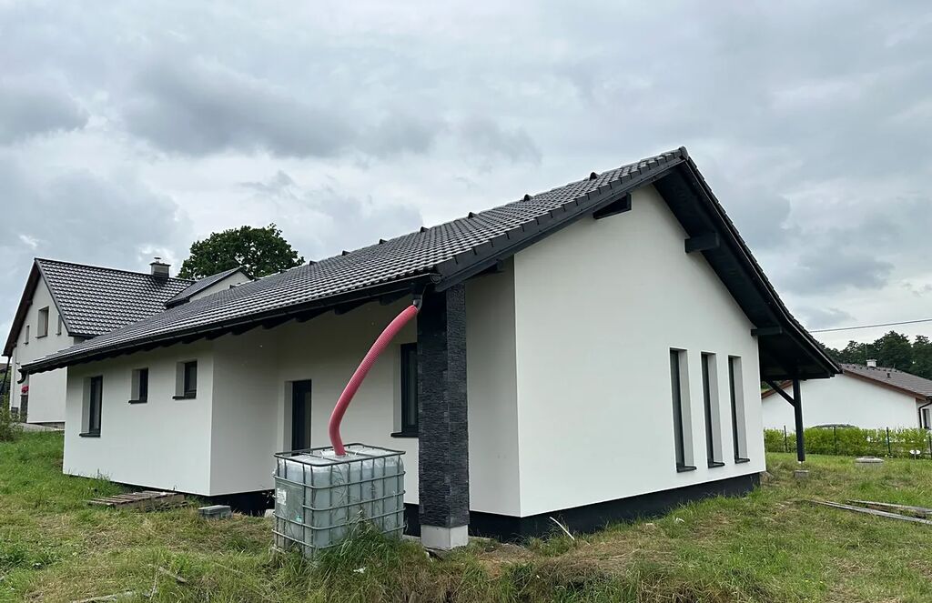 Dům nyní ve fázi venkovních dokončovacích prací a v procesu kolaudace.