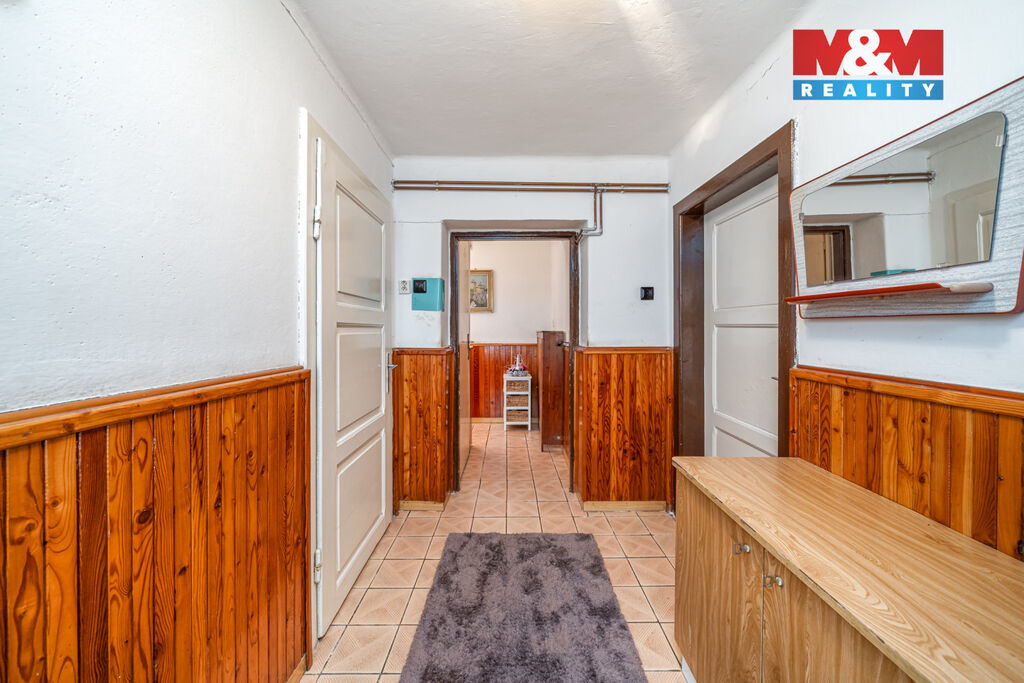 Nabízíme prodej chalupy o dispozici 5+1 v obci Ryžoviště, okres Bruntál. Dům je v původním udržovaném stavu. V přízemí domu je vstupní chodba s komorou, kuchyně, obývací pokoj, ložnice, toaleta s koupelnou, kotelna, špajz, vstup do sklepa a zadní východ do zahrady se zasklenou verandou. V patře potom dva další pokoje a užitná půda. Původní kotel na tuhá paliva byl vyměněn za plynový kotel. K dispozici jsou i skladovací prostory v suterénu domu. V zahradě stojí zděná hospodářská budova a další dřevěné kůlny. Z vrchní zahrady možný výjezd dřevěnou branou na polní cestu a louky. Jedná se o velmi klidnou lokalitu s krásnými výhledy na okolí a s veškerou občanskou vybaveností přímo v obci. Bezplatná pomoc s vyřízením financování nemovitosti je u nás samozřejmostí. PROHLÍDKOVÝ DEN VE ČTVRTEK 30.10. ZAVOLEJTE MAKLÉŘI A DOMLUVTE SI VČAS SVŮJ TERMÍN PROHLÍDKY.