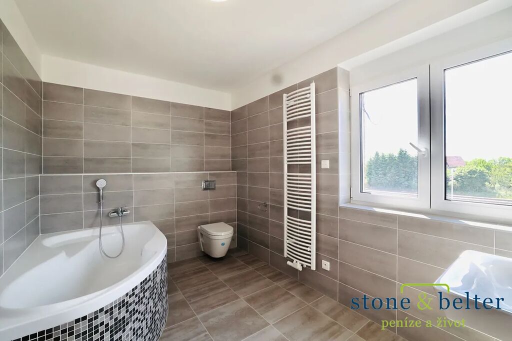 K dlouhodobému pronájmu nabízíme novostavbu rodinného domu 4+kk + pracovna v ul. U Nučického nádraží v Rudné u Prahy o velikosti 110 m² se zahradou 344 m² (pozemek celkem 516 m²). Jde o krajní stavbu řadového trojdomu. V přízemí naleznete prostorný obývací pokoj s výstupem na terasu a zahradu, kuchyňský kout, pracovnu a koupelnu se sprchou a WC. Ve 2. NP jsou 3 pokoje a koupelna s vanou a WC.