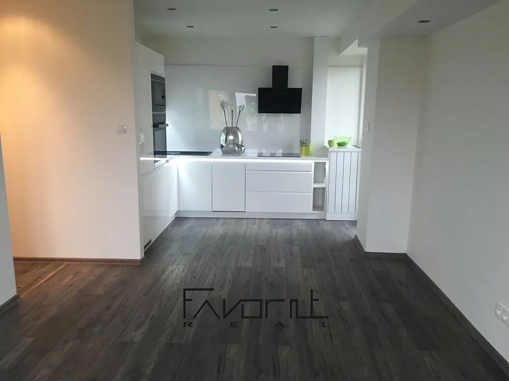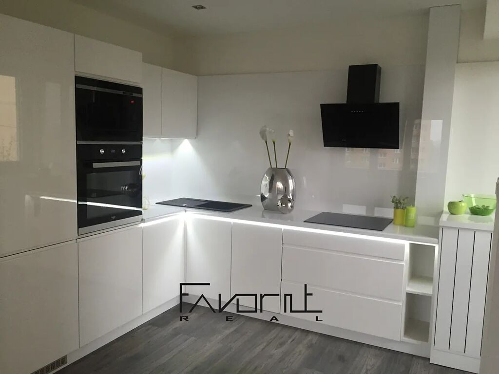 Byt prošel kompletní rekonstrukcí před 5 lety – nové elektrické rozvody, plovoucí podlahy, kuchyňská linka v bílém lesku.