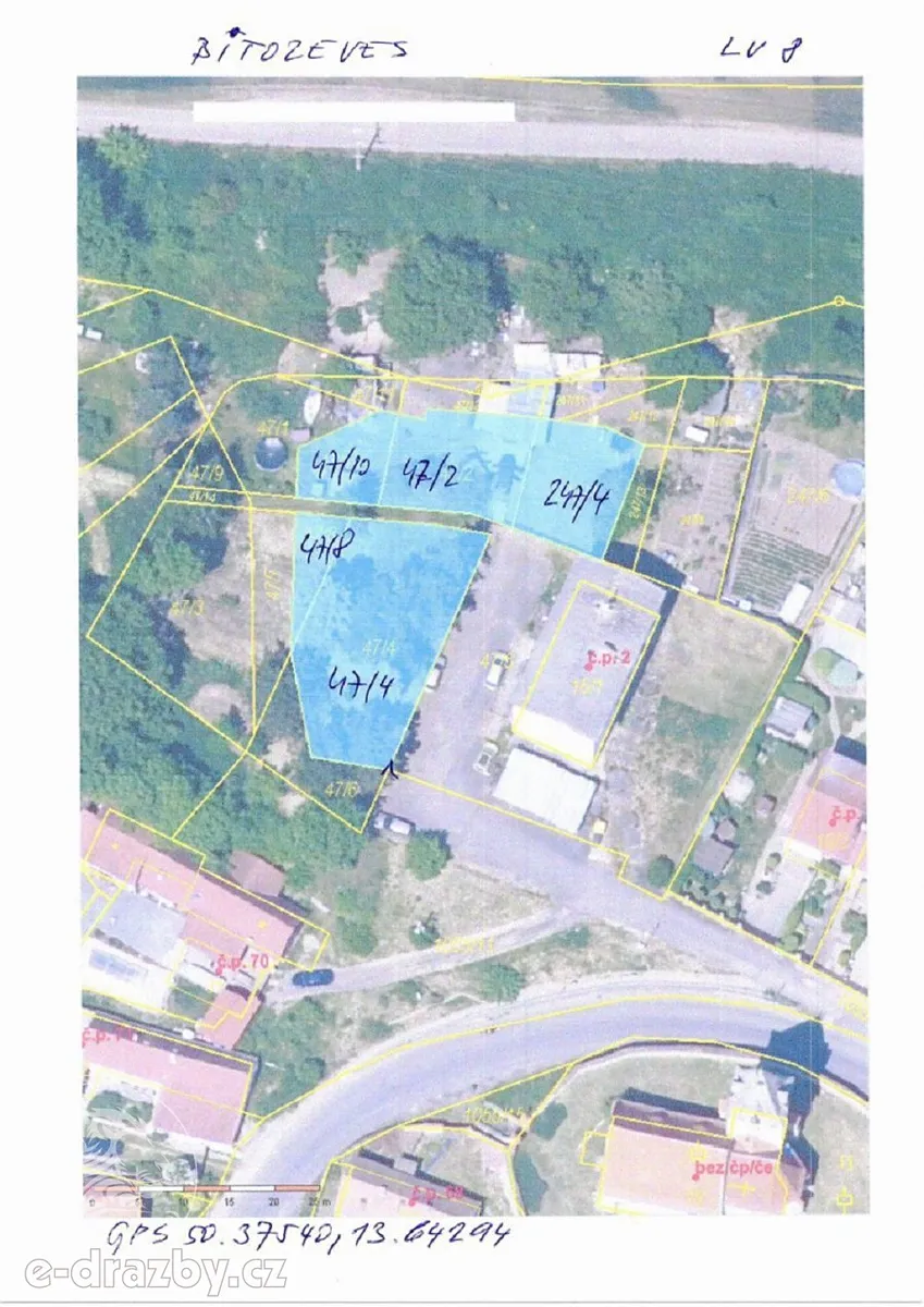 Předmětem dražby jsou nemovité věci v kat. území Bitozeves, které se nachází u bytového domu č.p. 2 v blízkosti kostela.