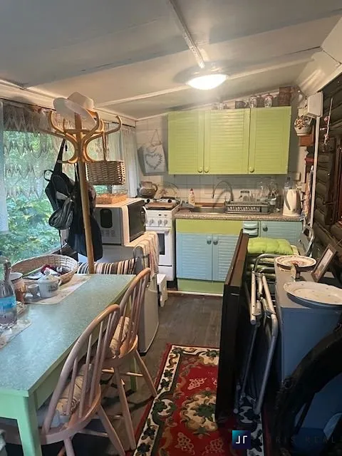 V přízemí chaty se nachází vstupní zastřešená veranda s příjemným pohledem do zeleně s kuchyňským koutem, ze které vstoupíme do obývacího prostoru s kamny na dřevo. Dále je tu vstup do nově postavené koupelny se sprchovým koutem a suchou toaletou. Do patra se vstupuje po žebříku, kde je malinká ložnice již obložená dřevem a úložný prostor – vše se dá spojit dohromady.