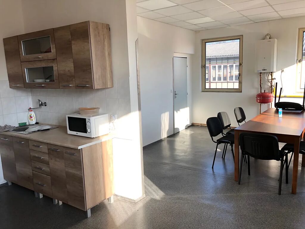 Komerční prostor je tvořen kancelářemi a sociálním zařízením o výměře 88m2 a skladovou/výrobní částí o výměře 408 m2. Prostory lze upravit podle vašich představ. Uvedené prostory jsou vybaveny samostatným kuchyňským koutem a 2-mi toaletami. Vytápění je zajištěno plynovým topením.