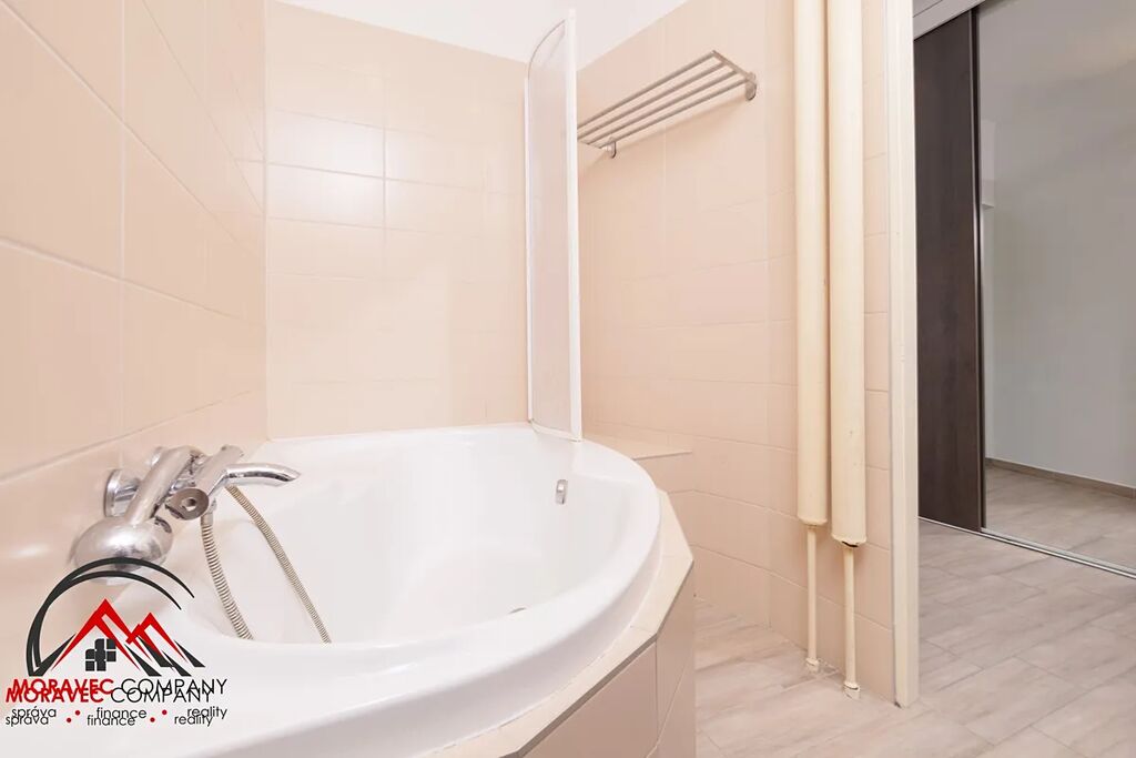 Vybavení bytu zahrnuje kuchyň s kombinovaným sporákem, digestoří, mikrovlnkou a myčkou. Koupelna je vybavena vanou a praktickými skříňkami na hygienické a uklízecí prostředky. WC je samostatné.
