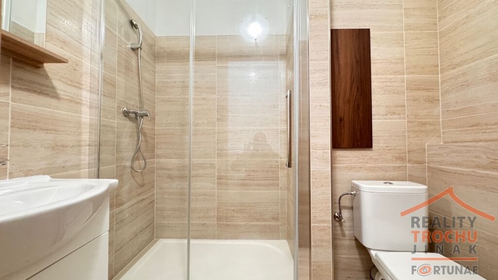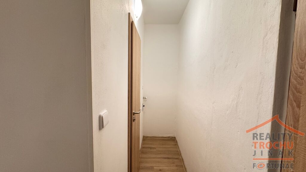 Dispozice: vstupní chodba, 1 obytná místnosti, kuchyň, koupelna (sprchový kout), WC, sklepní kóje. V bytě je nové zděné bytové jádro, koupelna, krytiny podlah.