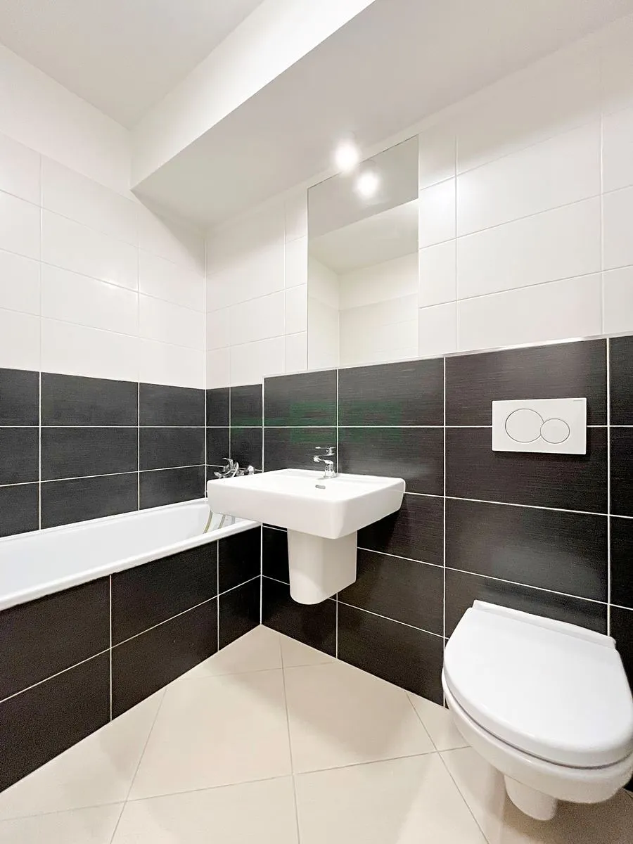 Nabízíme k pronájmu krásný a světlý byt s balkónem v novostavbě (kolaudace 2016) v ulici Zakšínská, Praze 9. Dispozice 1+kk 26,7 m2 + lodžie 2,9 m2, ve 2. podlaží s výtahem. Klid, volný výhled do upraveného vnitrobloku se zelení a výborná dostupnost MHD (8 min. chůze na |M| Střížkov). Ve vnitrobloku multifunkční hřiště. V bytě kuchyňská linka s lednicí s mrazákem, troubou kombinovanou s mikrovlnkou, sklokeramickou varnou deskou a digestoří s odtahem do stoupačky. Koupelna s vanou, závěsným WC, topným žebříkem a prostorem pro pračku. V předsíni botník se zrcadlem. Krytina v pokoji plovoucí podlaha, v předsíni a koupelně dlažby. Vytápění ústřední, dálkové. Velká plastová okna téměř přes celou šíři pokoje včetně nových žaluzií. Orientace oken na jih. Zavedena kabelová televize a internet UPC (Vodafone) až 1Gb/s nyní za 299,-Kč/měs.! Veškerá občanská vybavenost v místě, včetně polikliniky s pohotovostí 350 m od domu. Výborné spojení autem na D8. Cena 16.000,-Kč + služby 2.700,-Kč + elektřina cca 700,-Kč. Kauce ve výši 19.000,-Kč, provize pro RK ve výši jednoho nájmu + 21% DPH. K nastěhování od 1. prosince 2025.